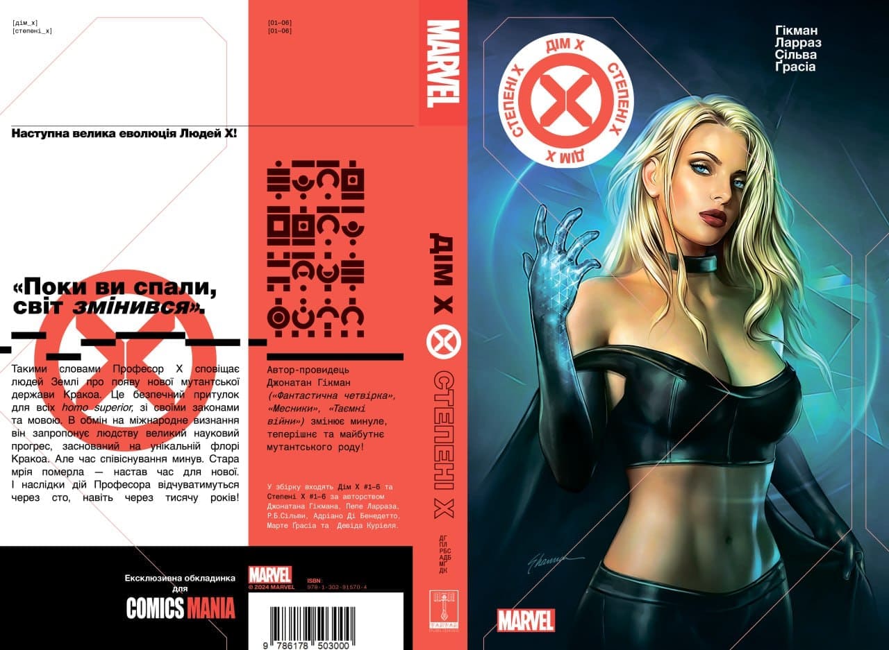 - 8️⃣ Партнерська тверда обкладинка для Comics Mania з Еммою Фрост та суперобкладинкою з командою Людей Х та Апокаліпсисом.
