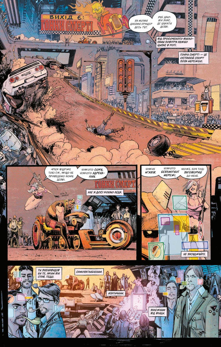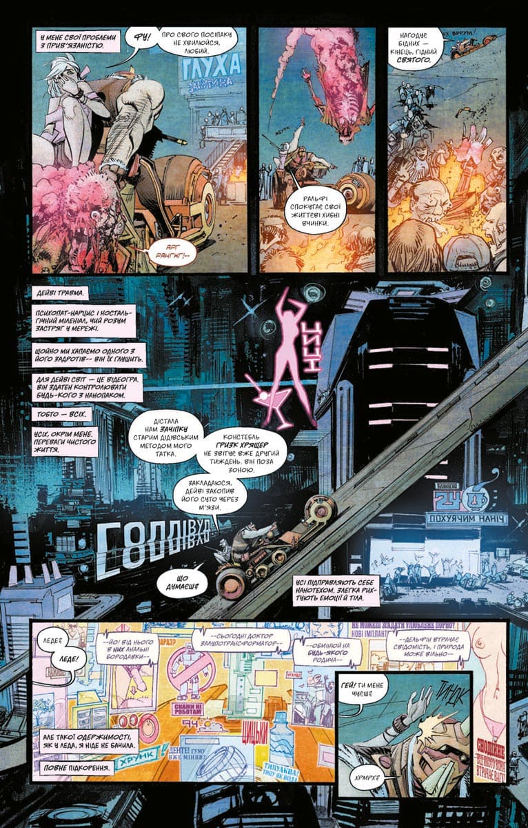 📜 Острови Лос-Анджелесу, 2089 рік, людство набуло залежності від технології. Безробітні шукачі дозвілля у сліпому блаженстві, попри токсичність атмосфери, позичають, крадуть і вбивають задля ще однієї цифрової дози. Ця індустрія найбільша та єдина, а керують нею бандити. Але до кого звертаються ці бандити, коли їм необхідно підтвердити своє право? До констеблів Леда Дента і Чахлої Деббі. Їм запропонують роботу, яка висмикне їх із відомих нетрів Лос-Анджелесу й закине у останню вільну від технологій країну світу — Токійську державу-сад.