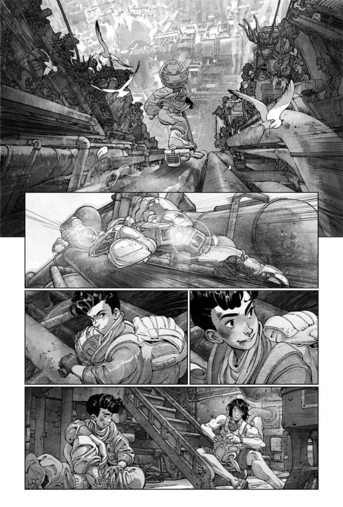 — Я хотів би сказати, що співпраця — це щось само собою зрозуміле, але хороша співпраця працює не так. Вона будується на тому, що ми підштовхуємо один одного до нових творчих обріїв. Оскільки я співпрацюю з Еваном та Анандом вже багато років, я продовжую уявляти свої історії як простір, де їхнє мистецтво та візуальна мова можуть еволюціонувати та розвиватися в нових напрямках. Я також запросив їх обох зробити свій внесок у побудову світу та сюжету — поза межами того, що вони вирішать зобразити на сторінках.