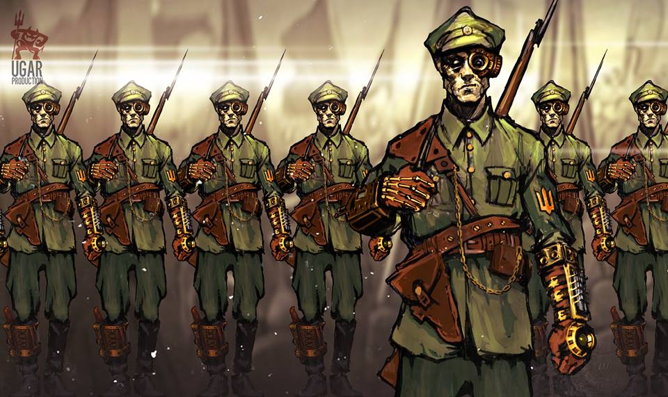 Бойових паророботів не буде, скоріш за все (принаймні, у перших сюжетах), але фантастично переосмислену зброю, військову техніку та самих військових вже можна побачити на промо-артах.